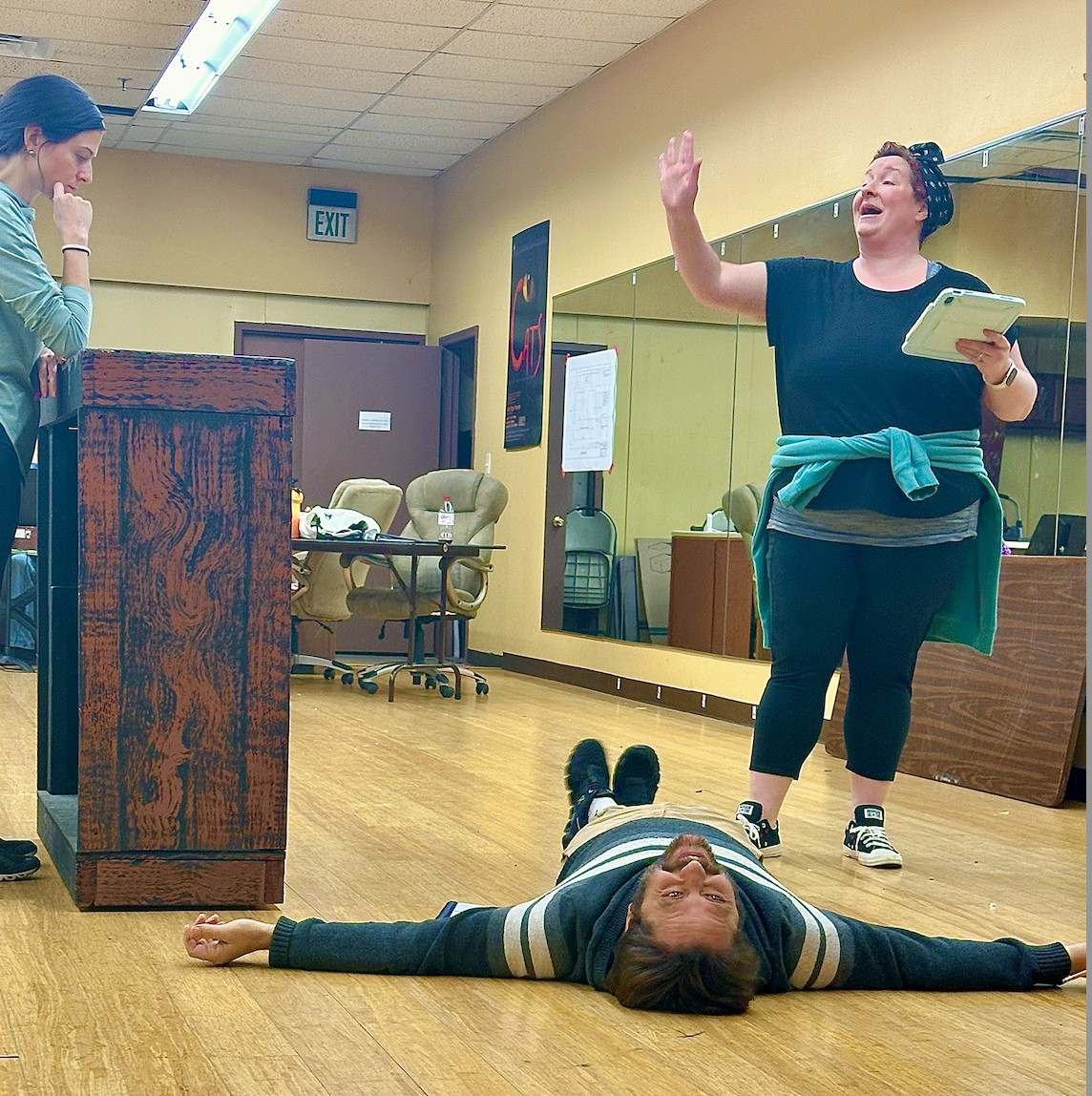 Jacinda directs actors Corbin Holland (Gerry Goffin) and Claire Johnson (Carole King).